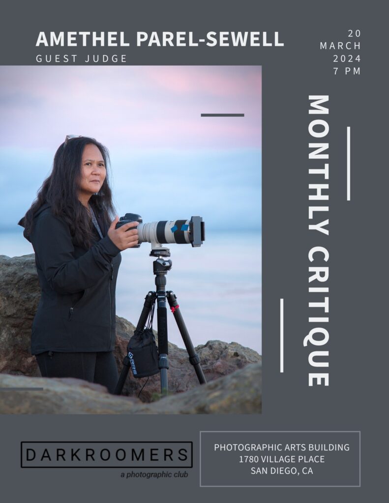 Amethel Parel-Sewell has over 30 years of multidisciplinary experience as an editor-in-chief, creative director, photography editor, photographer, multimedia producer, graphic designer, and educator. She’s a Program Coordinator for the International Exhibition of Photography at the San Diego County Fair, where she has also served as a judge and a speaker before joining as a coordinator.