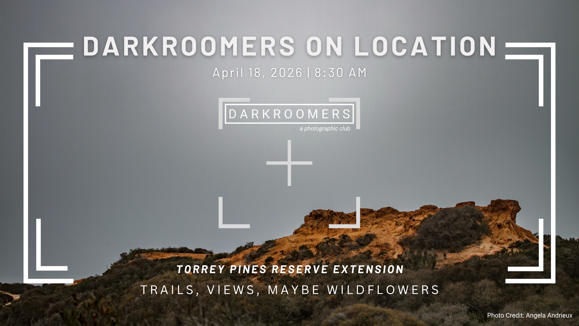We will be meeting at the Torrey Pines State Reserve Extension this Saturday at 8:30 AM. Free parking for the extension is in the residential areas just outside the preserve. There are trailheads there; I believe fairly easy trails. There are also other trailheads at the other side of the preserver; if we want we can check those out after. With luck there may be some flowers there, but regardless should be some nice views and natural features to photograph. Remember our current quarterly theme is Diptych, so plan on some 2-frame images! Info and good maps are here:
