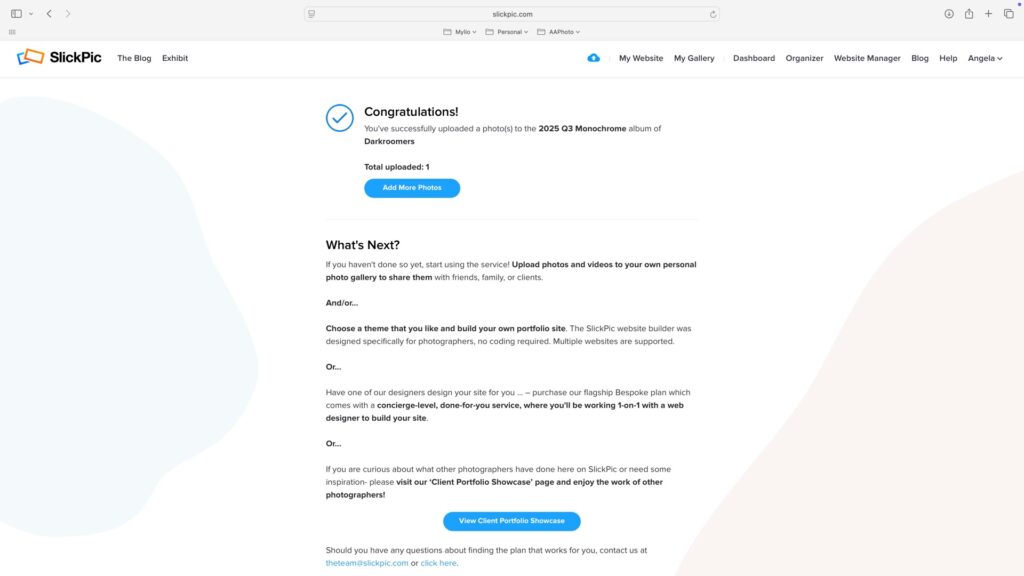 A confirmation screen will appear. To add another photo, click Add More Photos to repeat the upload process.