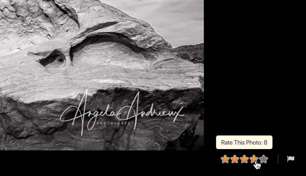 Move your mouse over the stars to give the photo a rating between 0.5 and 5 stars. You can use half-star increments (for example, 3.5 stars).