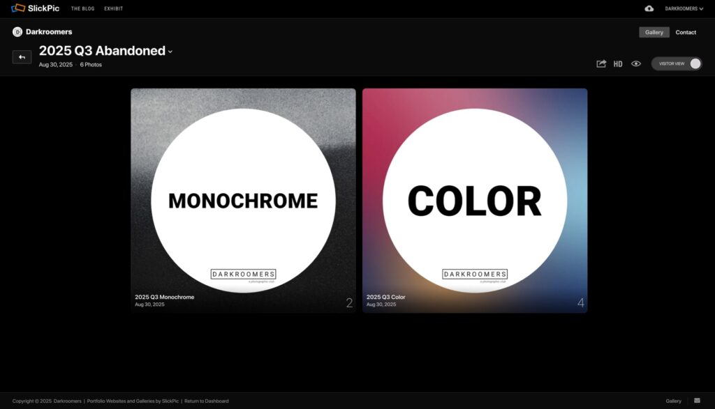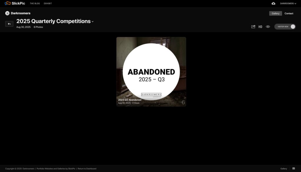 - Images submitted to the Quarterly Competition are NOT automatically eligible for the Darkroomers Year-End Competition. If you wish for your image to be considered for Year-End, you may also enter it into a Monthly Exhibition for judging and potential acceptance.